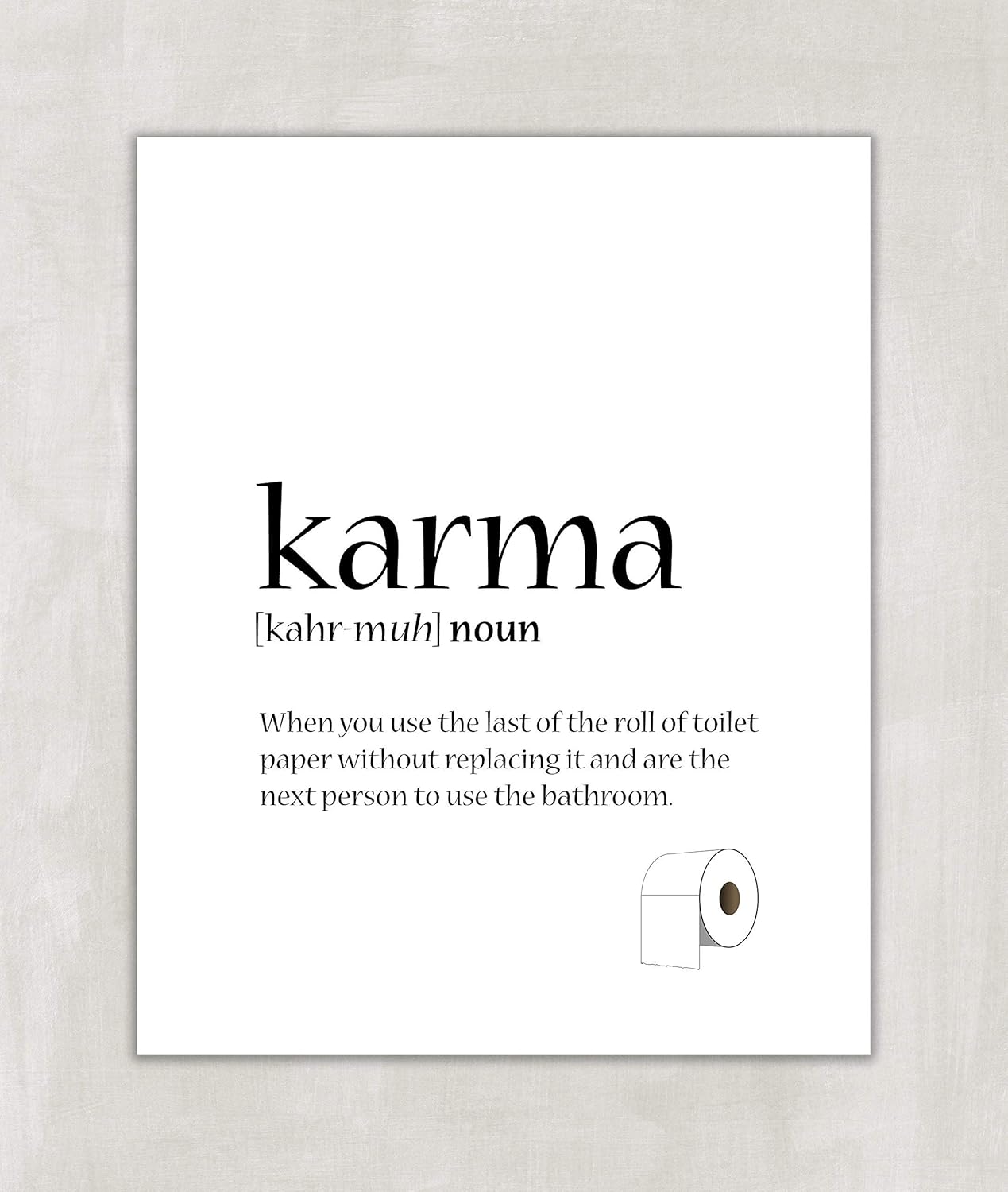 Karma Definition Print Karma Printable Bathroom Wall Decor Toilet Paper Art Bathroom Art Karma Poster Kaffee Spruche Kuchen Humor Kaffee Zitate